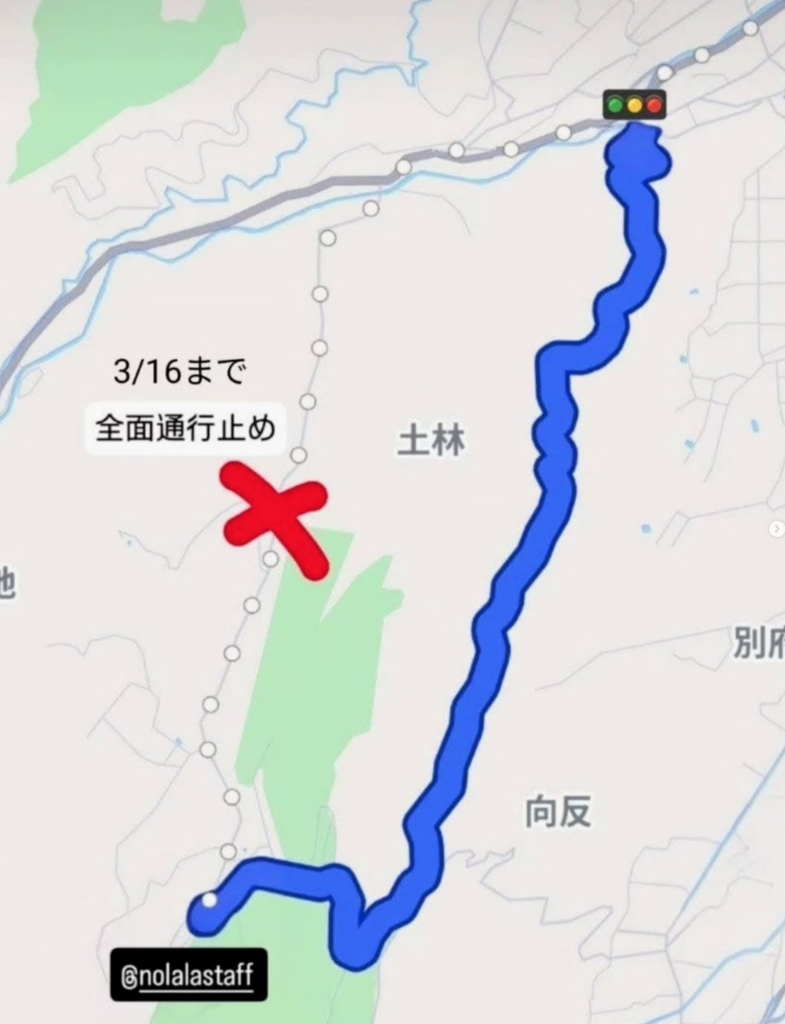 そのため、Googleマップなどのナビで検索すると、通行止め区間が案内されてしまう場合がありますのでご注意ください。
